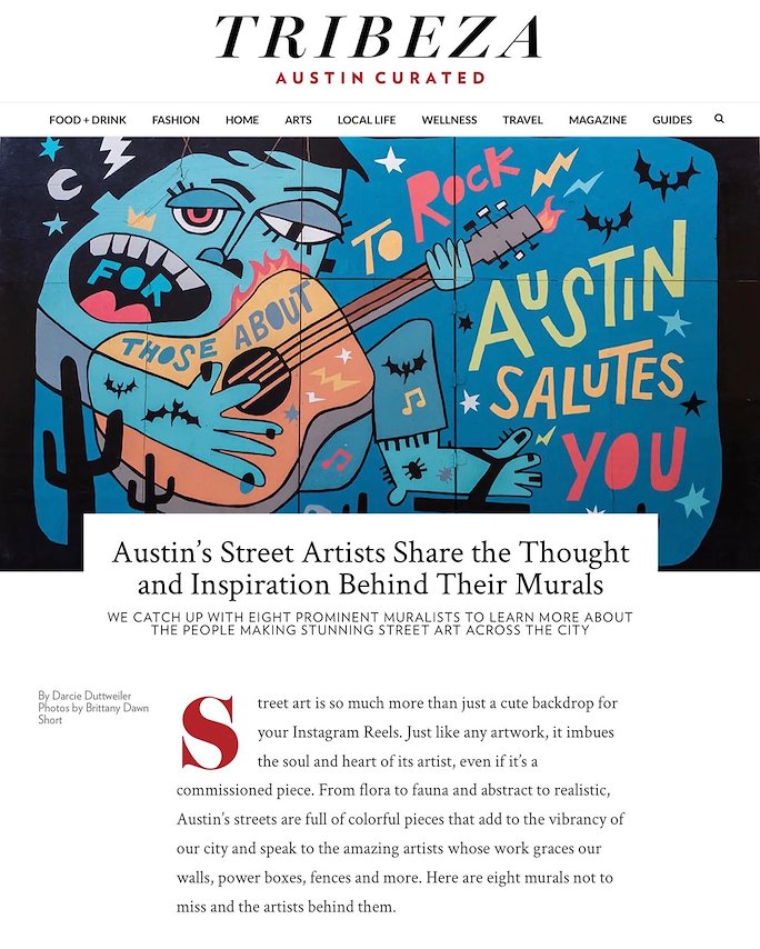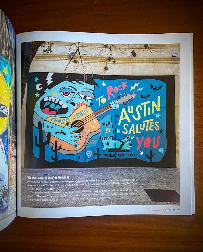 Thanks a lot for the love @tribeza magazine. I painted this mural on Congress Ave. during the pandemic (2021) to help the people from Austin to stay inspired. ¡Te amo Austin!