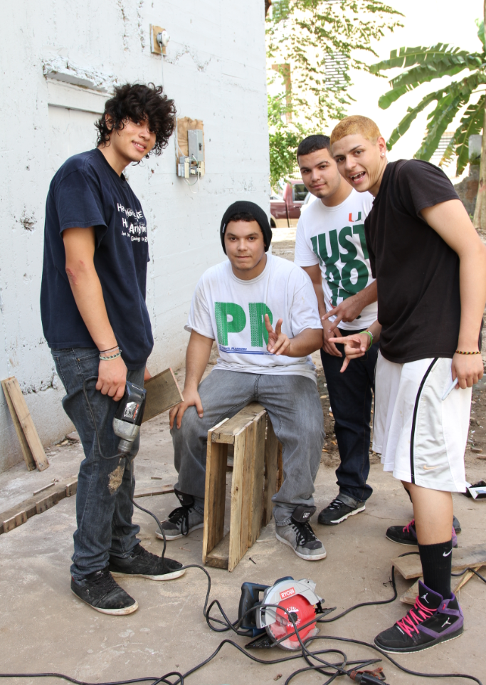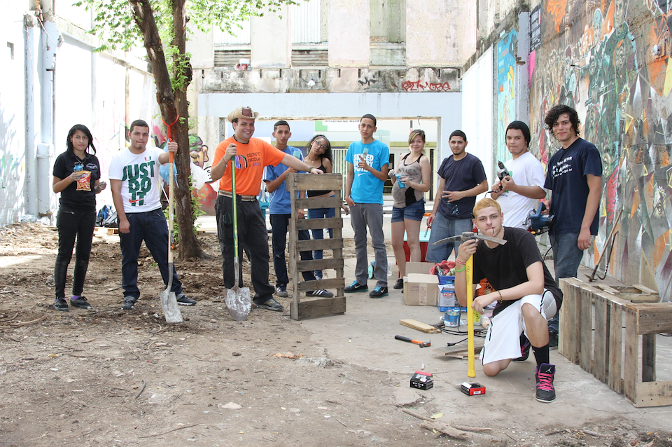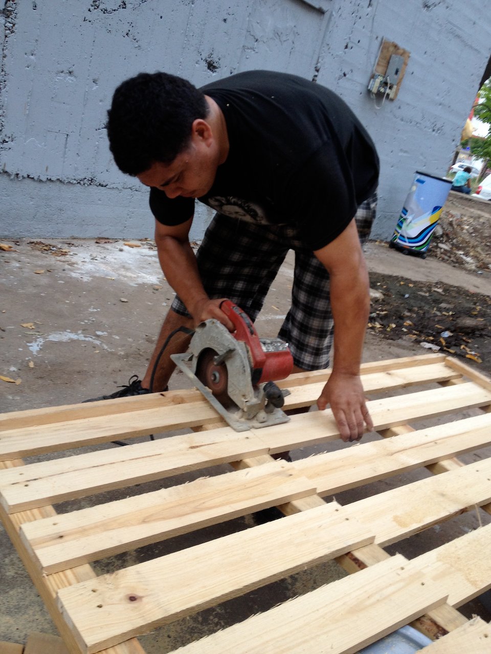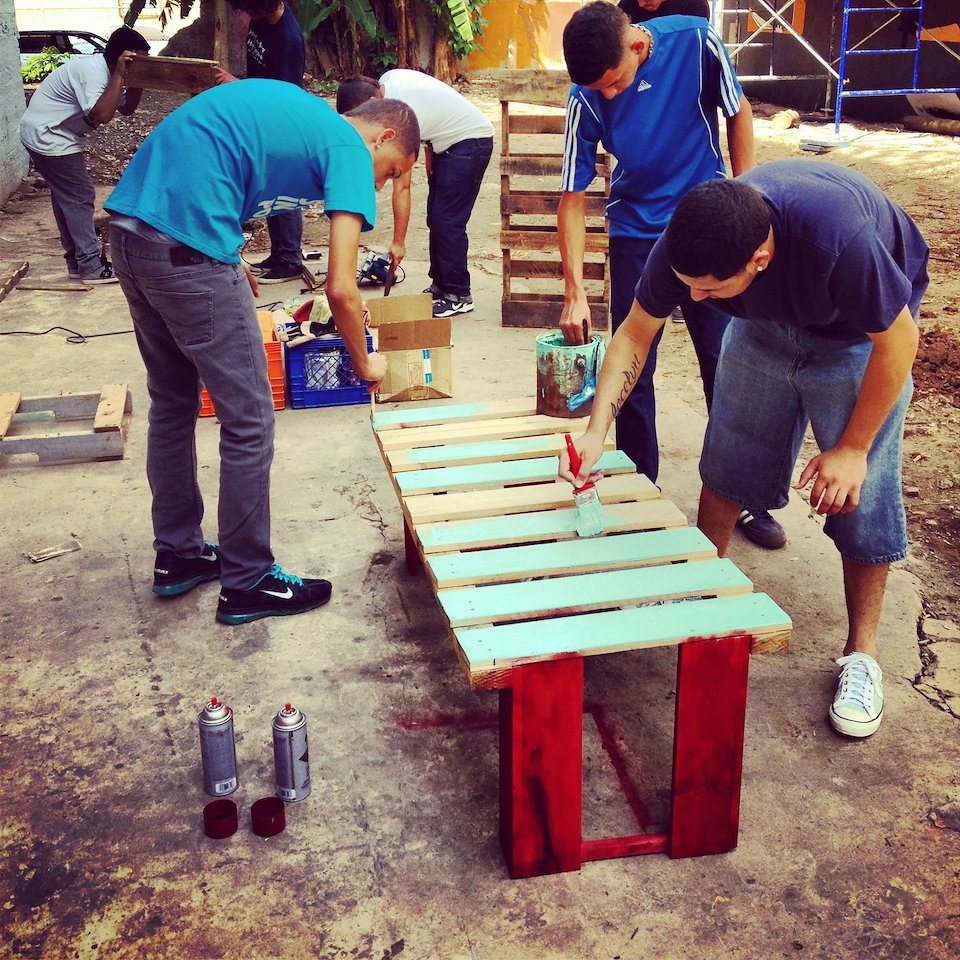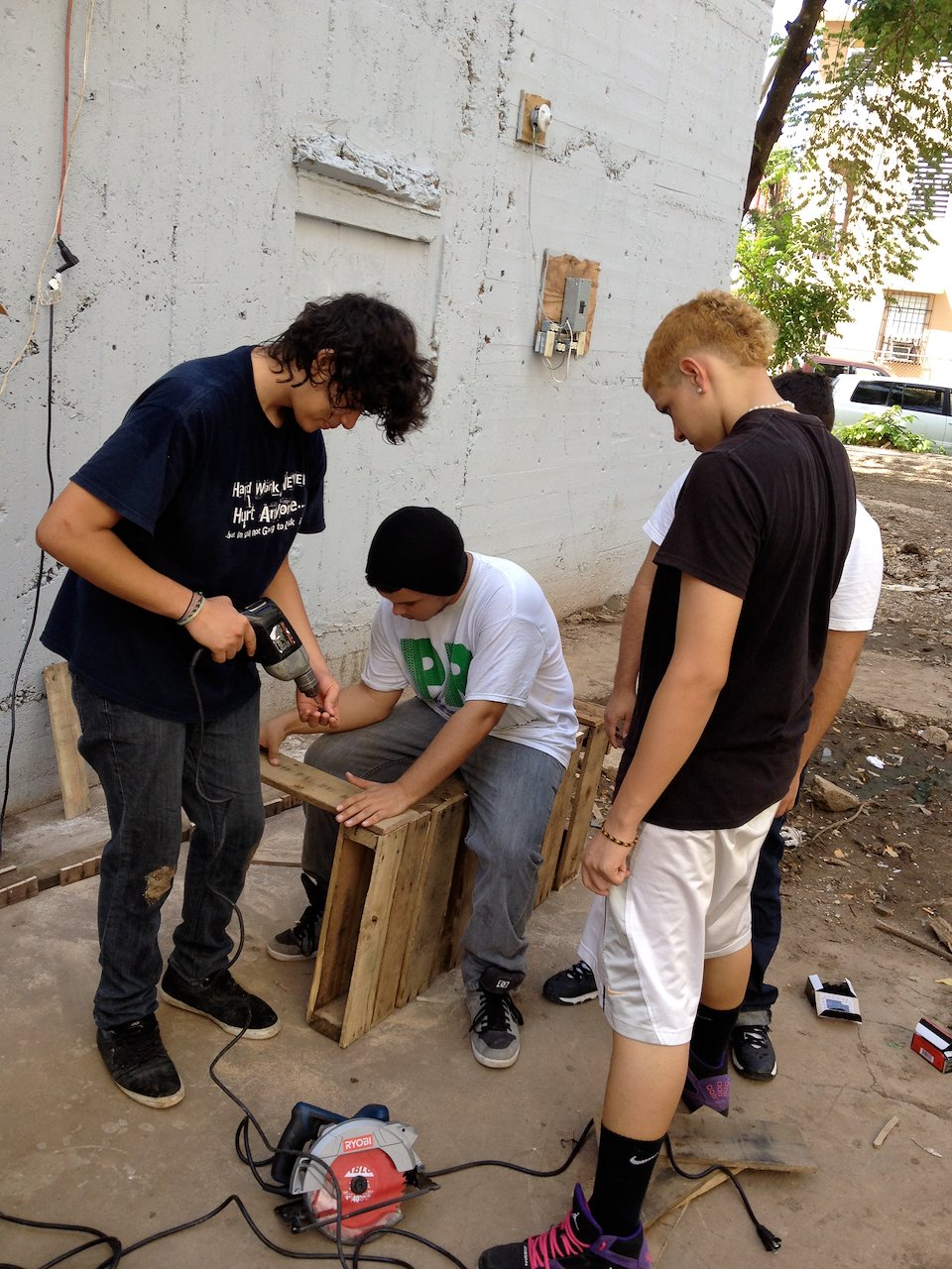 Project 177 – The students of The Institute of Education and Technology of Rio Piedras, Puerto Rico building the wood benches.