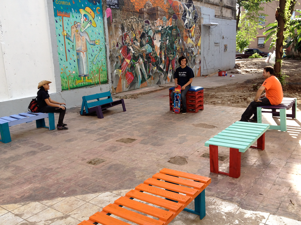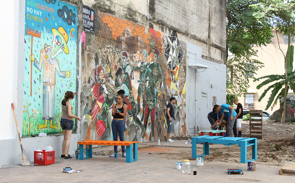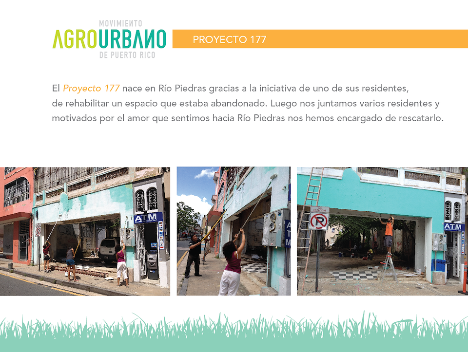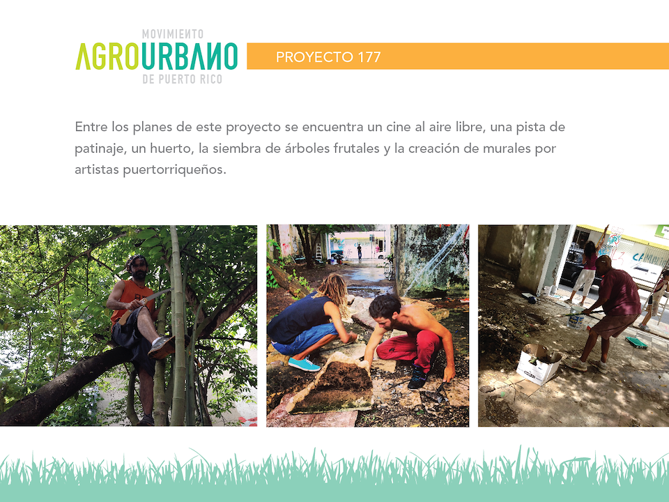 We took an old abandon theatre and cleaned it, painted murals, planted trees and constructed wood benches with the help of the students from The Institute of Education and Technology of Rio Piedras, so the people of the community can enjoy it. We projected films and invited the community to see them.