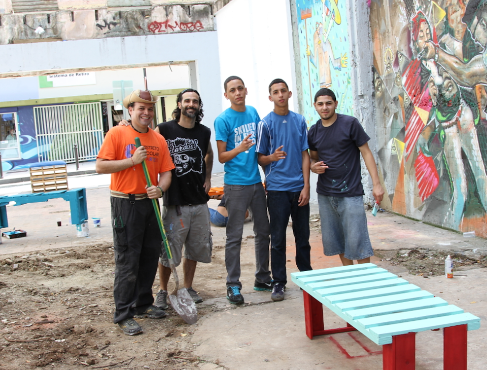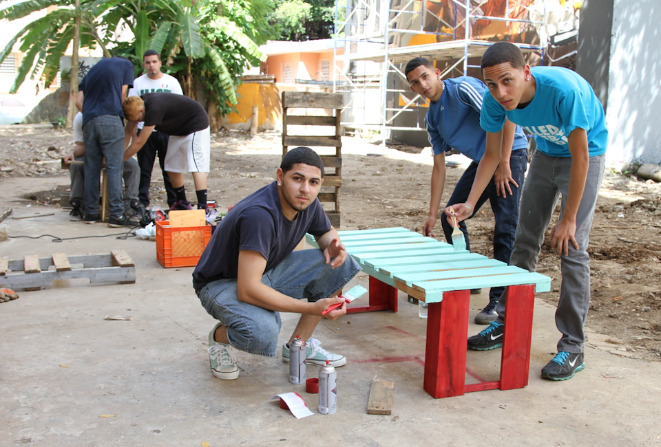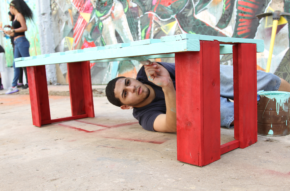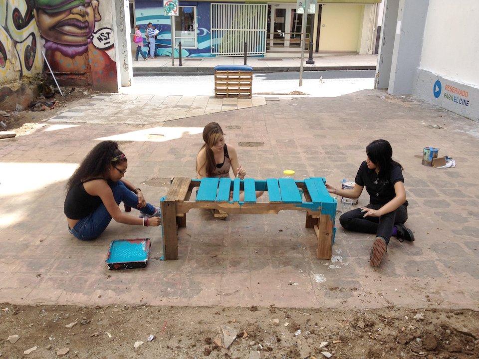 Project 177 – The students of The Institute of Education and Technology of Rio Piedras, Puerto Rico painting the wood benches.