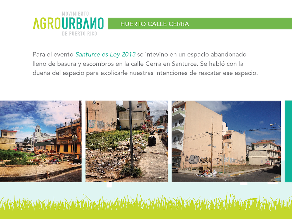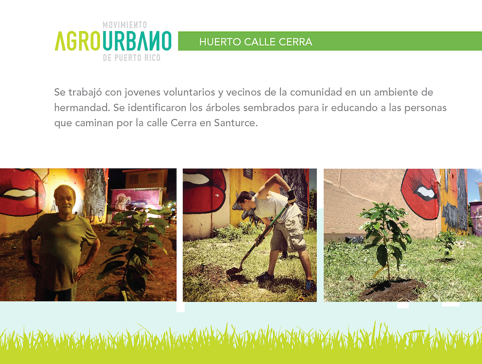 We took a dirty and abandon spot that was filled with trash at La Cerra Street, Santurce P.R. and cleaned it. We painted murals and planted fruit trees so the people in the community can enjoy it.