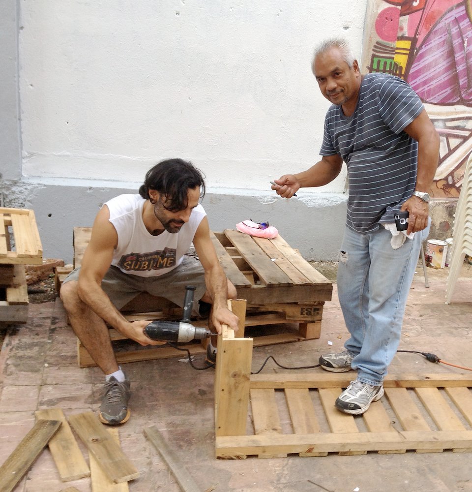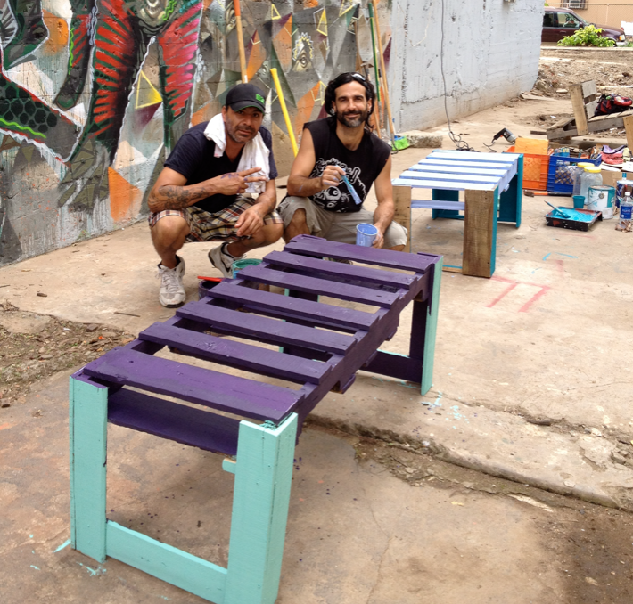 Project 177 – Mejicano and Fabian Rey painting the benches.