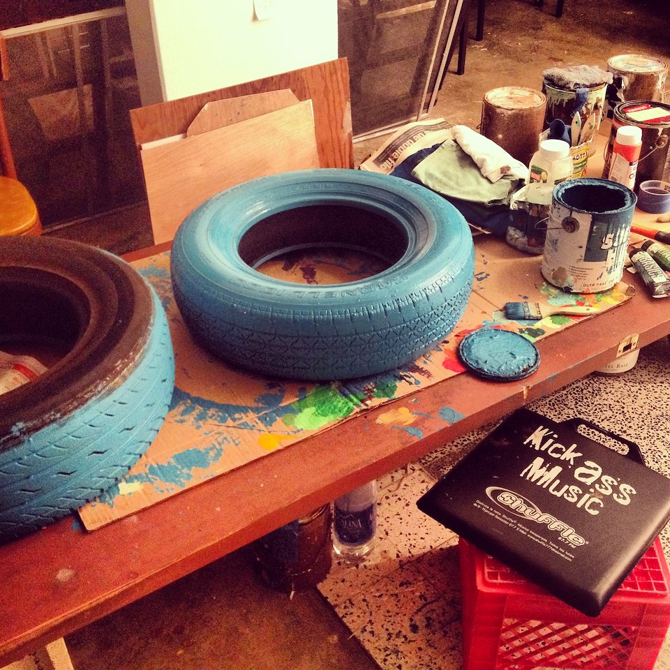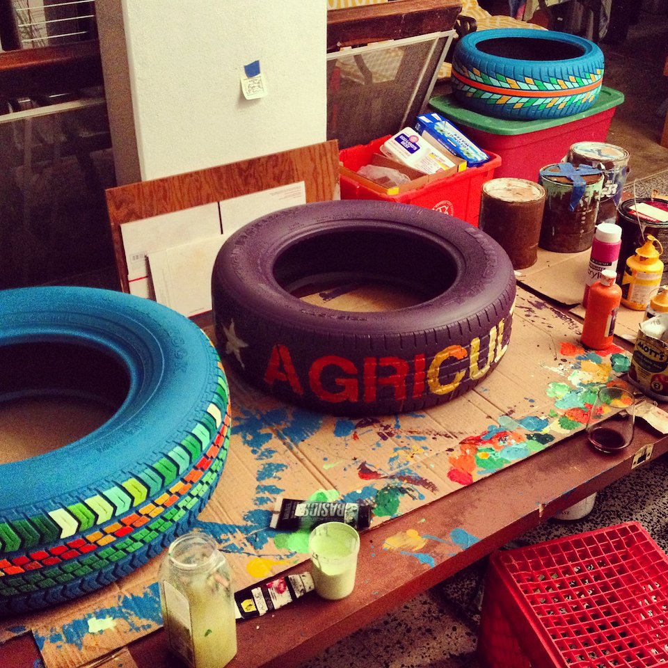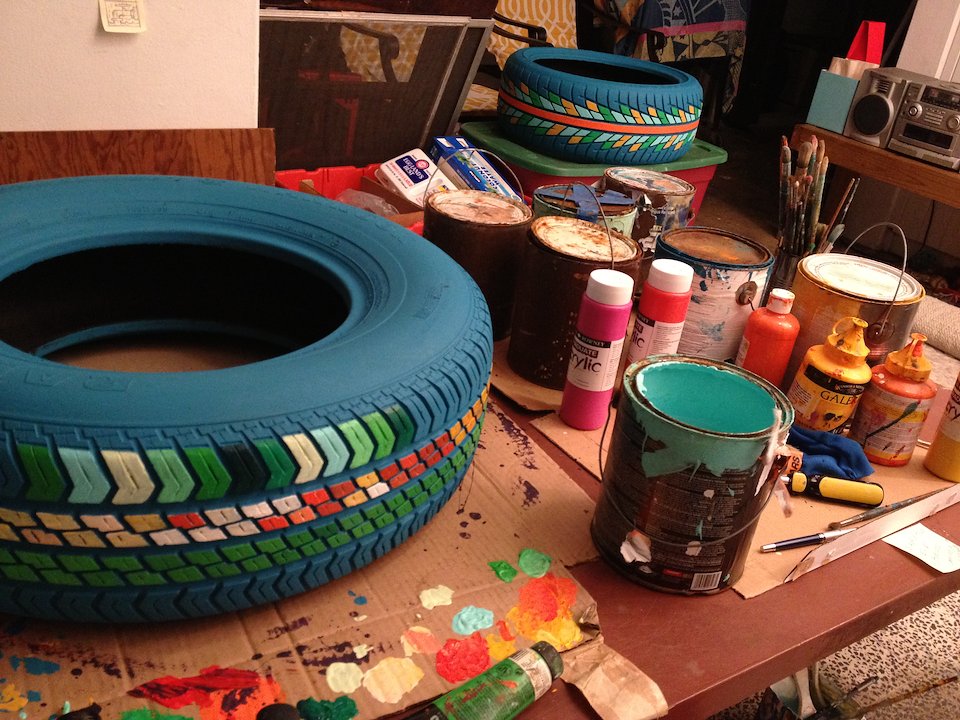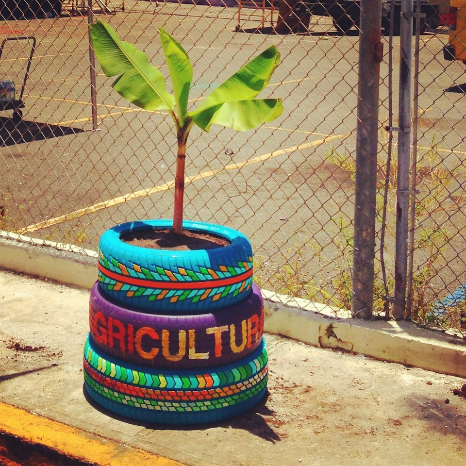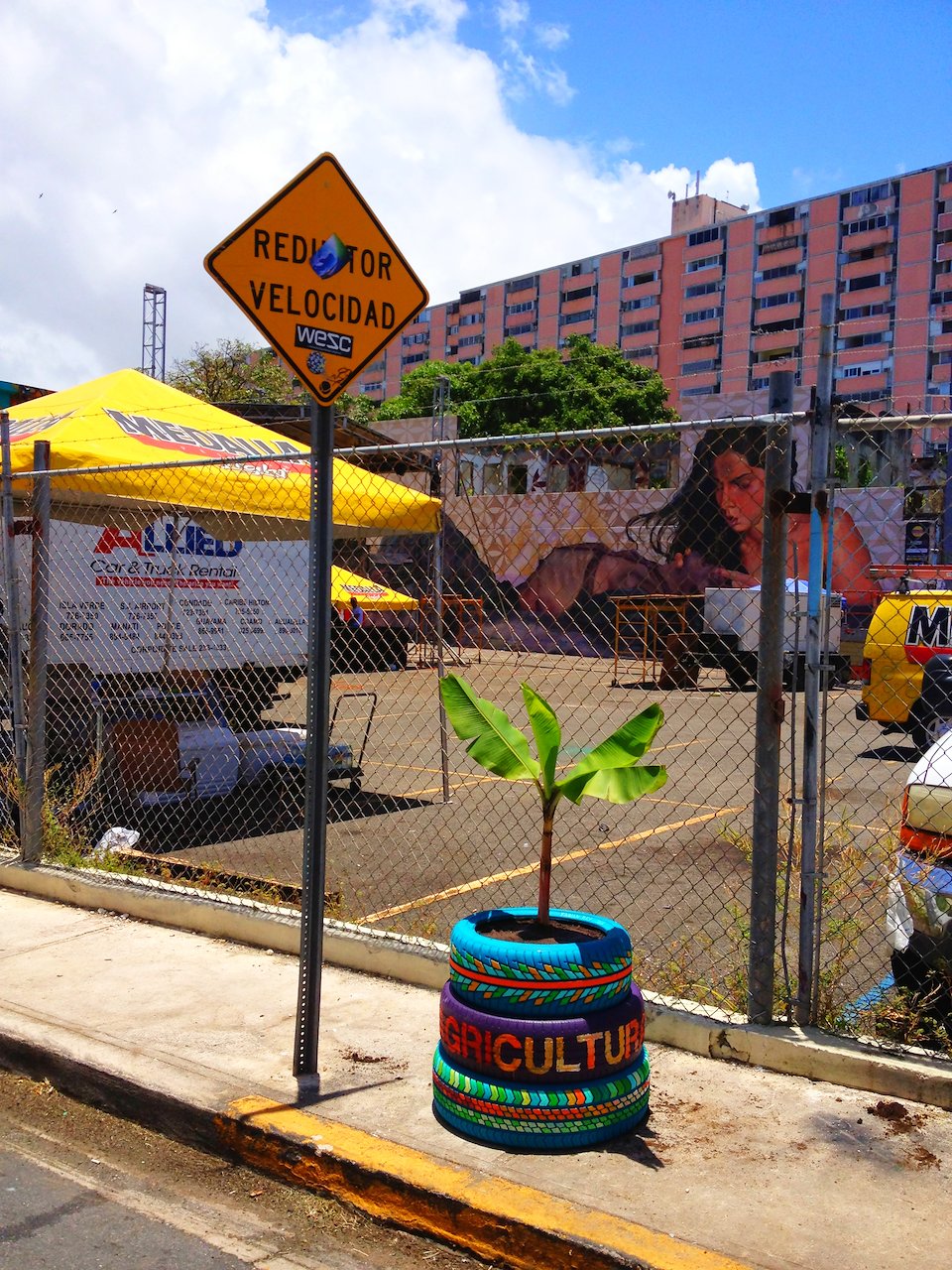 Handmade flowerpot made with recycle tires for The Independent Art Festival Santurce es Ley 2014.