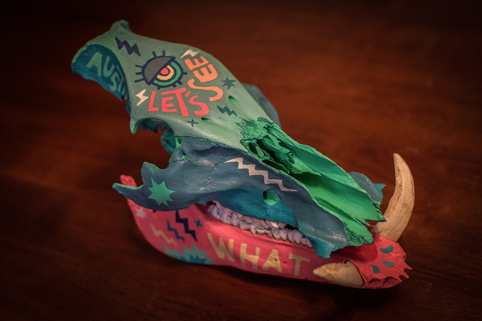 Painted Wild Boar Skull.