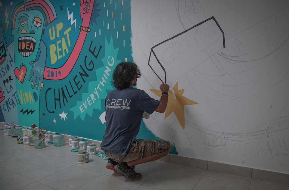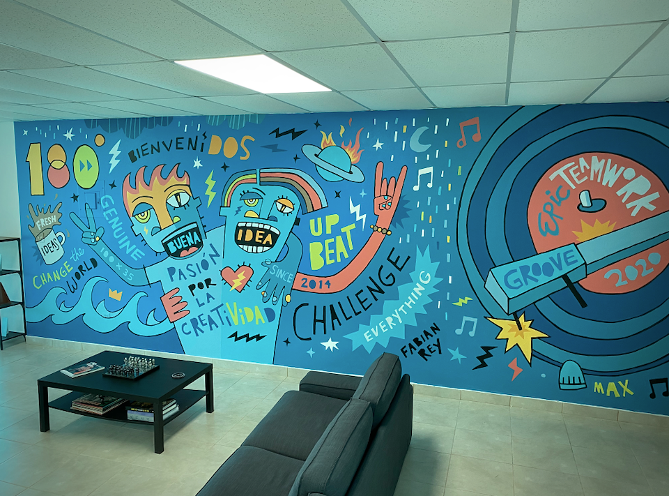 Advertising Agency in Guaynabo, Puerto Rico. They ask me to come up with the concept and the design of the mural. Here are the photos of this fantastic project.