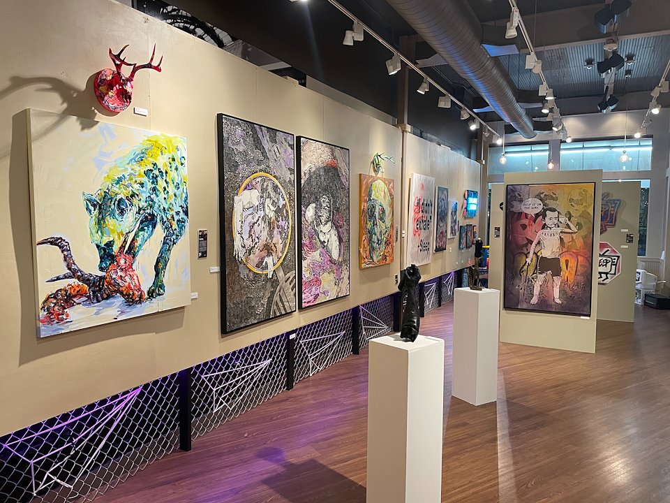 Property owner Janis Daemmrich reached out to Raasin in the Sun at the end of last year after her tenant went out of business due to COVID-19. She proposed letting a group of artists utilize the space in the meantime while the commercial real estate market was at a standstill. It was then that Raasin in the Sun tapped Something Cool Studios to curated and produce a unique art experience.