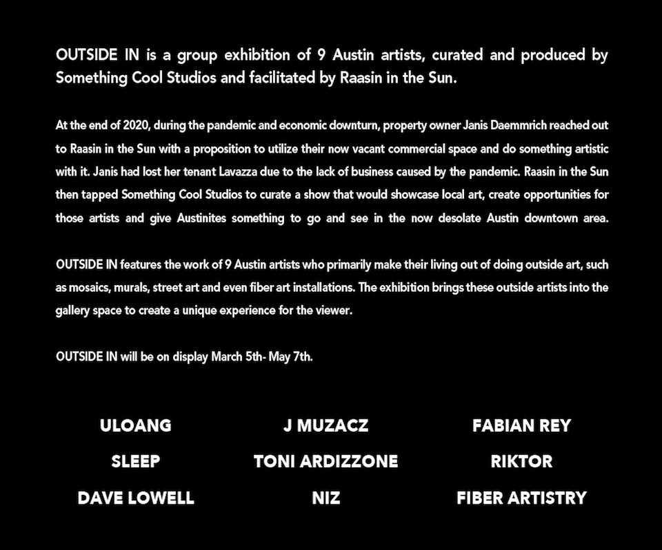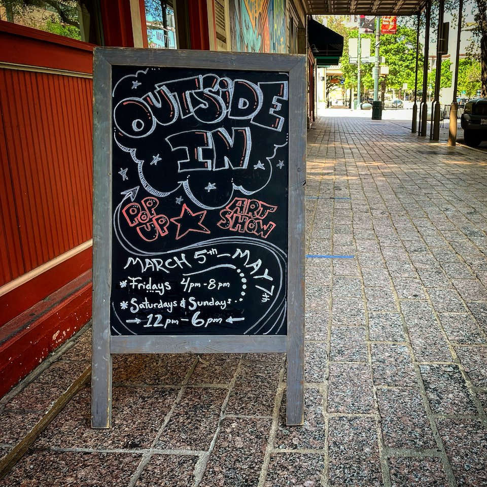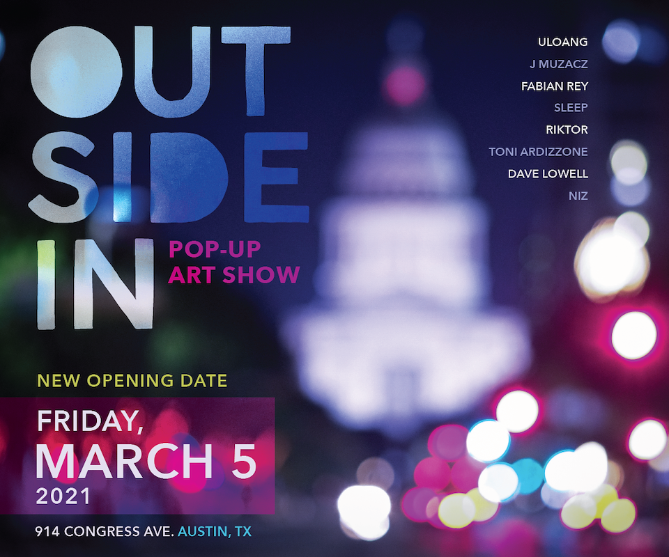 OUTSIDE IN Pop-up Art Show featuring 9 local artists in the heart of Downtown Austin.