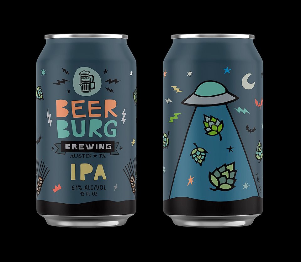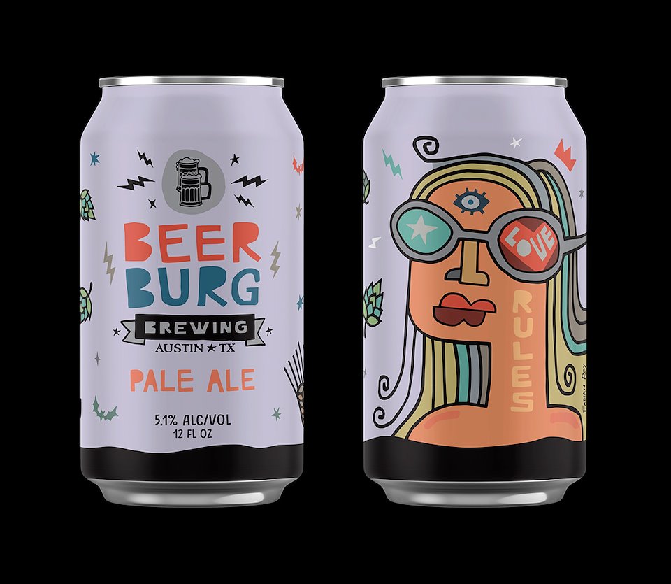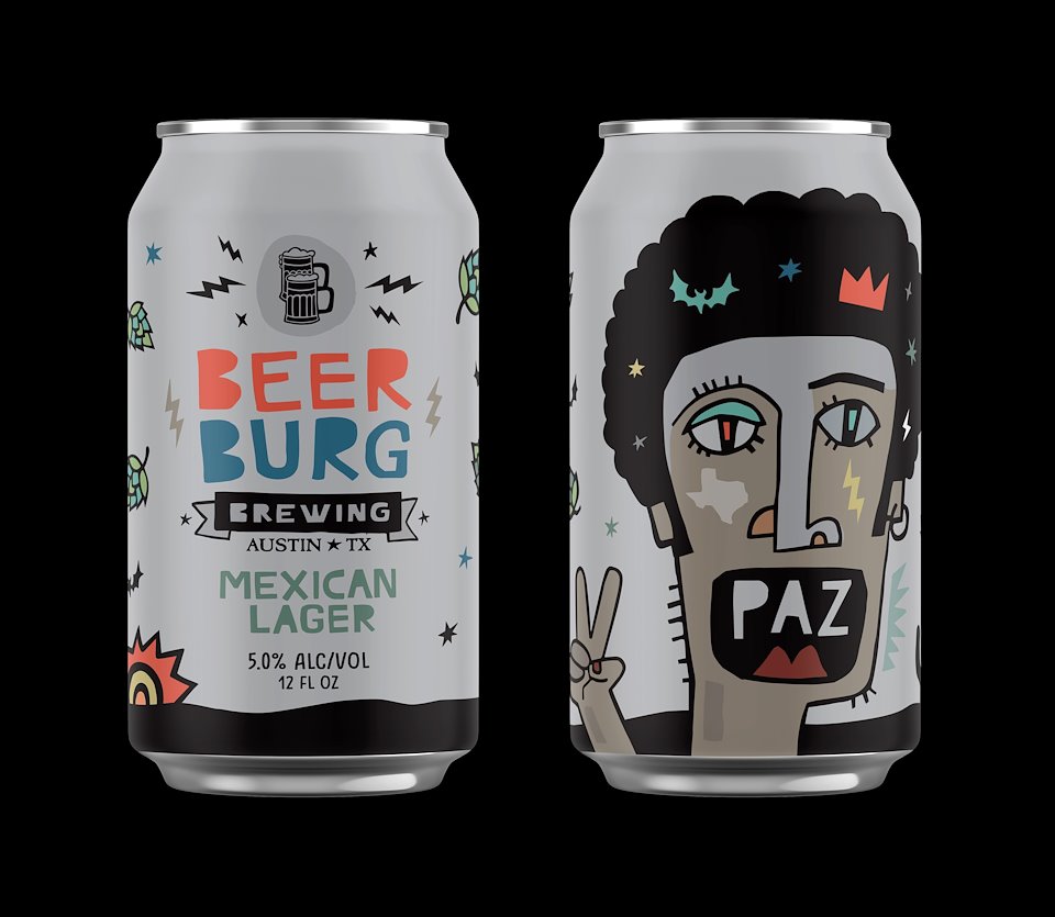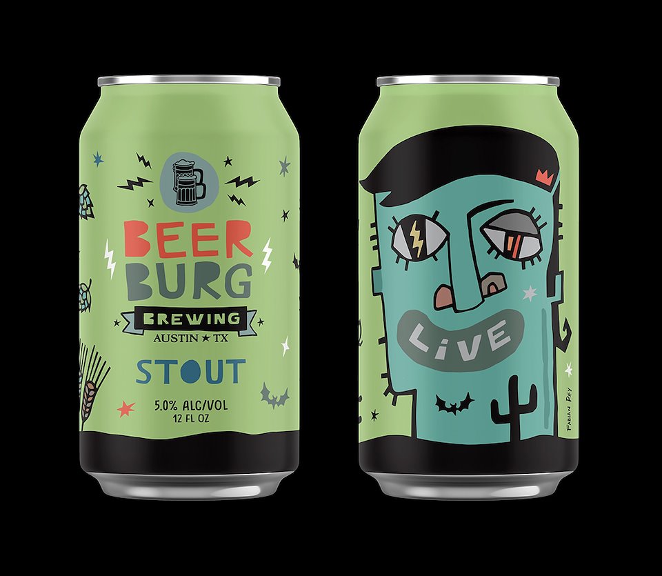 Can Designs for Beerburg Brewing, a brand new brewing company in Austin, Texas. The owner ask me to come up with the concept and the design for a mural on top of their bar. I painted a tribute to friendship on the mural and I thought it would be cool to have the same characters from the mural on their cans.