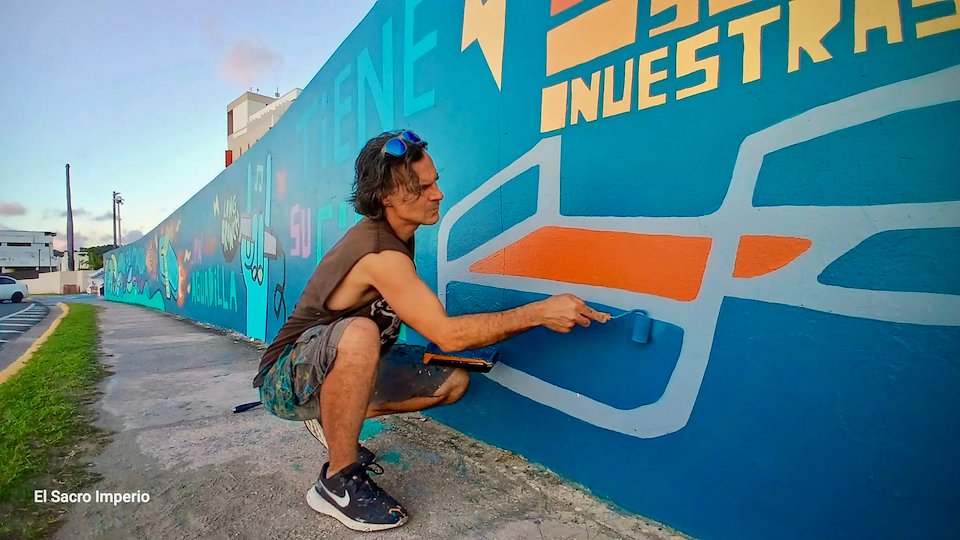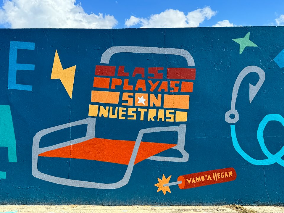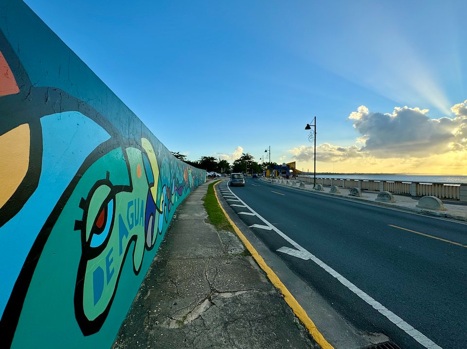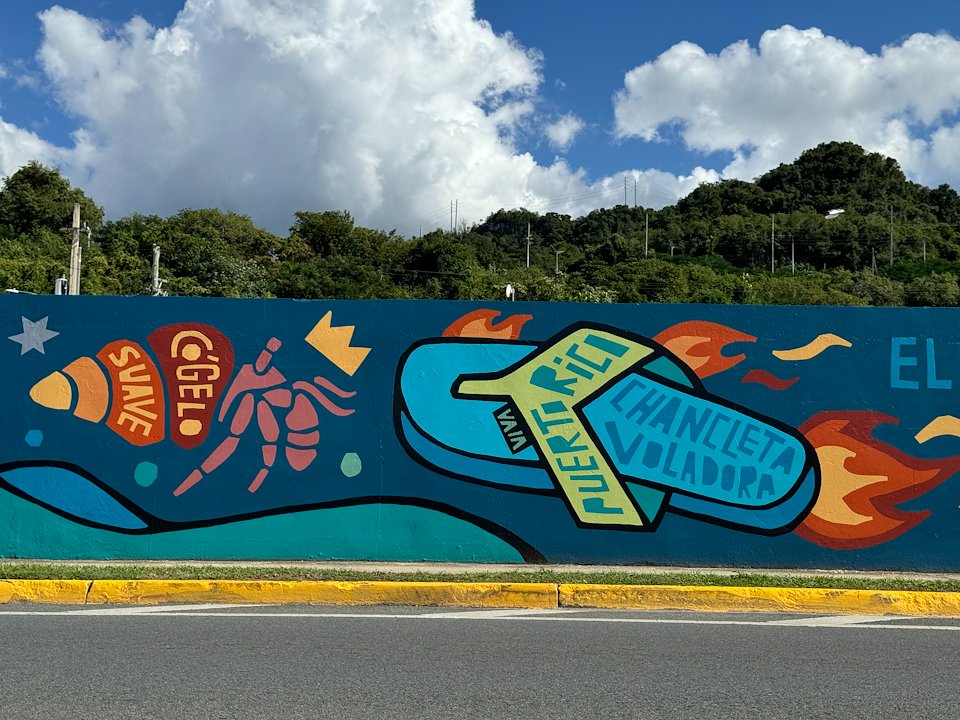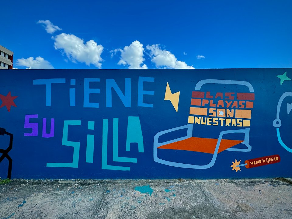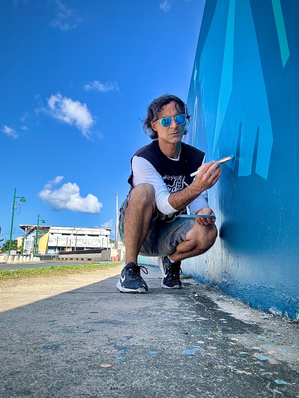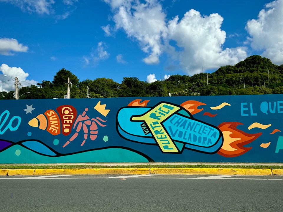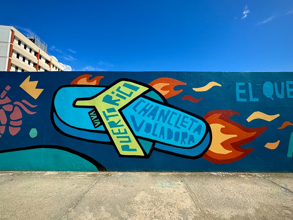 Una celebración vibrante de la resiliencia puertorriqueña y un testimonio de la belleza y de la cultura del pueblo de Aguadilla. El título en sí, “Marullo”, evoca las poderosas olas que rompen contra las costas de la isla, simbolizando la fuerza y vitalidad del pueblo puertorriqueño. Los colores vibrantes del mural captura la esencia de las queridas playas y los paisajes bañados por el sol de Puerto Rico, sirviendo como un poderoso tributo a la fuerza y el espíritu del pueblo puertorriqueño. Su celebración del patrimonio lingüístico rinde homenaje a la rica diversidad de dialectos puertorriqueños. Este mural es un tributo a la linda gente de Aguadilla y su espíritu caribeño.