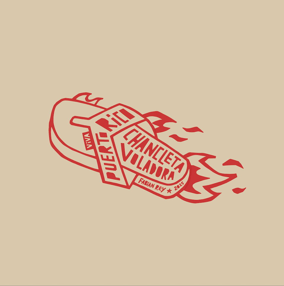 This illustration is a tribute to our Puerto Rican mothers and their legendary aim. Many of us were witnesses —or targets— of the educational power of the Flying Chancleta. The one that, without leaving a visible mark, instilled discipline, obedience… and an almost military-level respect. The flying chancleta shaped my childhood, and without it, I wouldn't be who I am today. — Fabián Rey