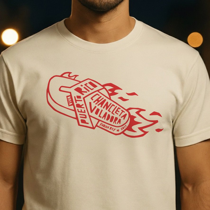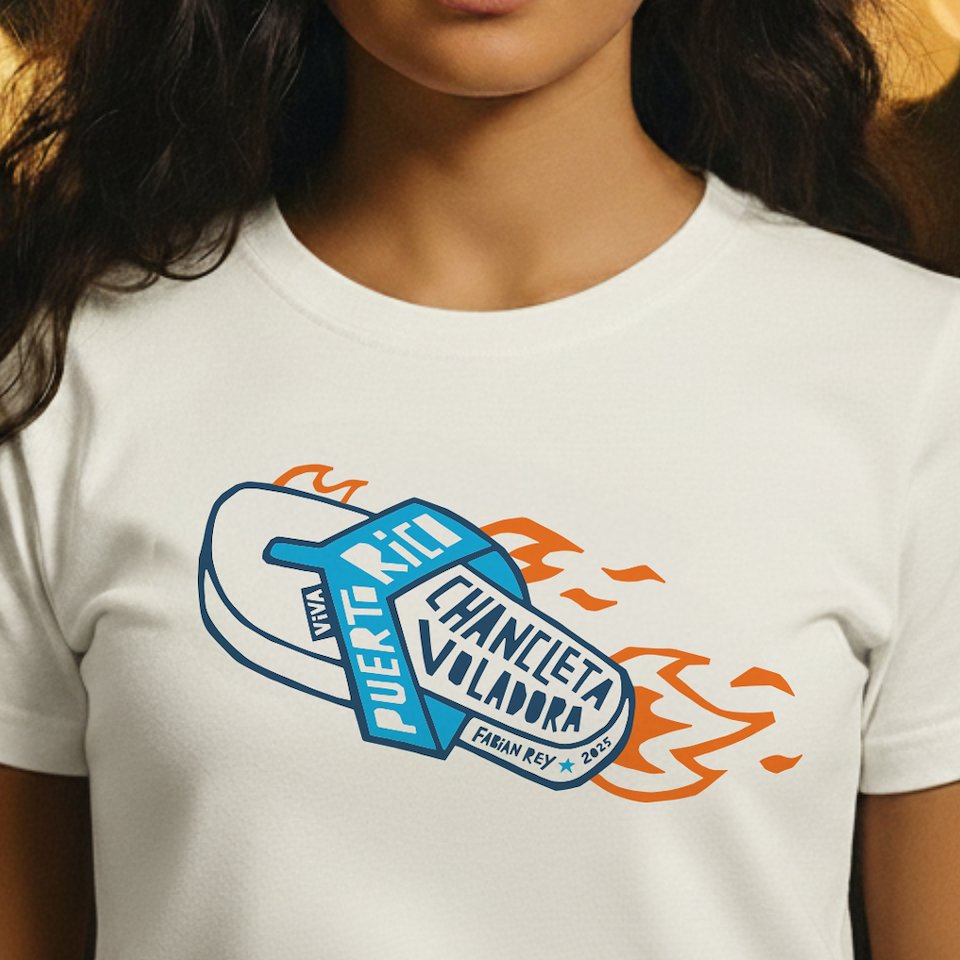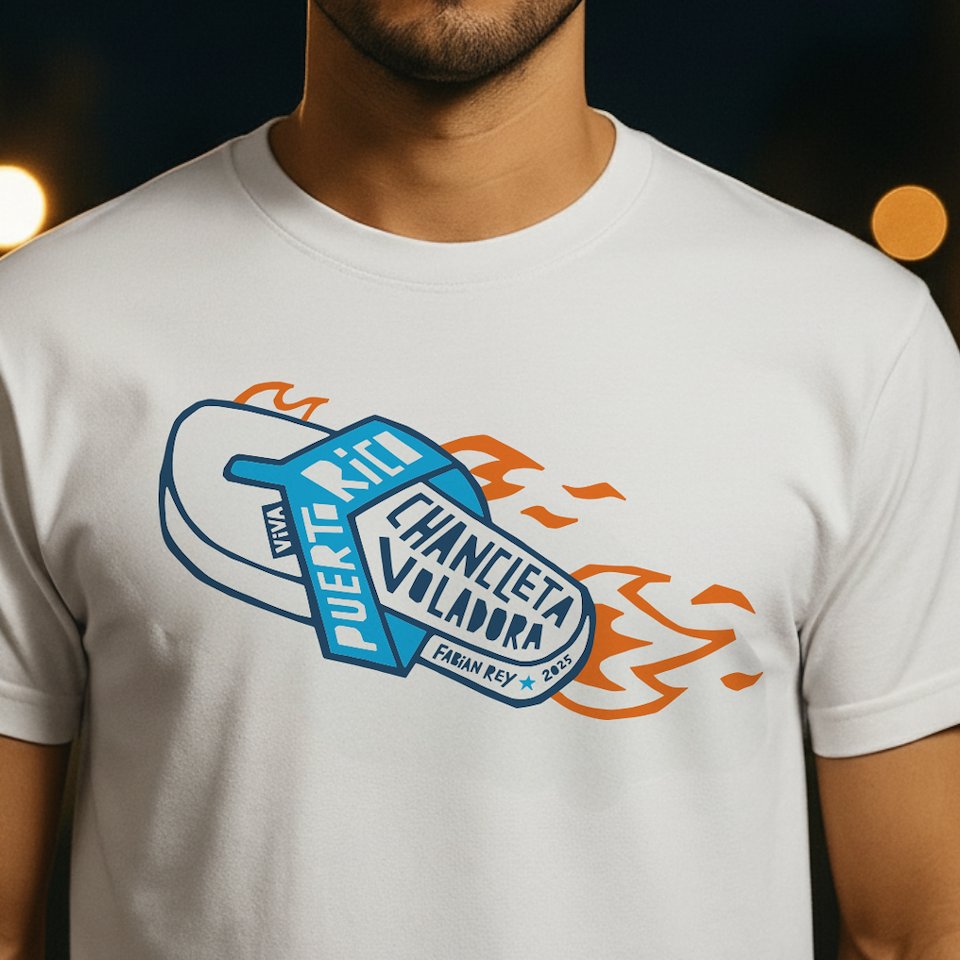 Esta ilustración es un homenaje a nuestras madres puertorriqueñas y su legendaria puntería. Muchos de nosotros fuimos testigos —o blancos— del poder educativo de La Chancleta Voladora. Aquella que, sin dejar huella visible, fomentaba la disciplina, la obediencia... y un respeto casi militar. La chancleta voladora marcó mi infancia, y sin ella, no sería quien soy hoy. — Fabián Rey